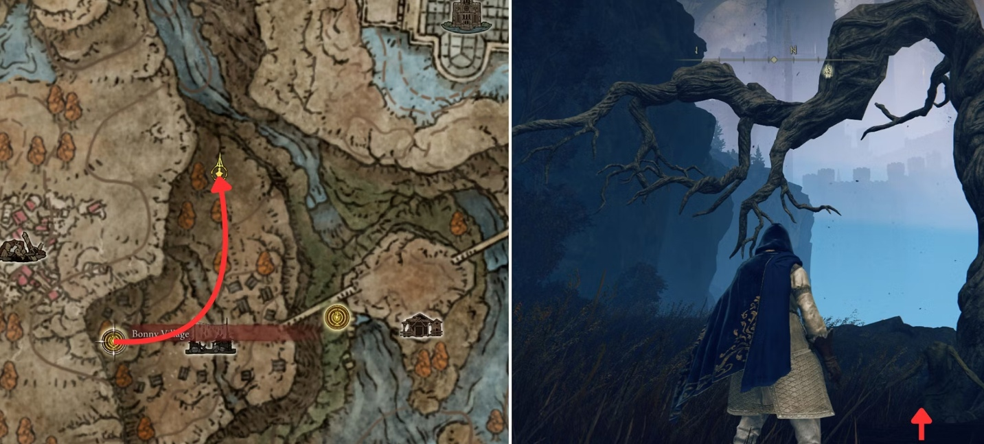 Откройте для себя место Благодати в деревне Бонни, а затем отправляйтесь на северо-восток через сломанный мост, чтобы обнаружить жест О Матерь у безголовой статуи Марики под засохшим деревом. Вы должны выполнить этот жест рядом с местом Грейс у задних ворот Теневого замка, чтобы получить доступ к секретной зоне в расширении.