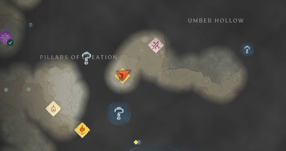 Мясо мятного гриба можно собрать с больших зеленых грибов, расположенных в enshrouded областях Нагорья Кочевников - большого биома на востоке карты, прежде чем вы достигнете пустыни Киндлвастес. Эта область находится к востоку от Столпов Творения, как показано на карте выше.