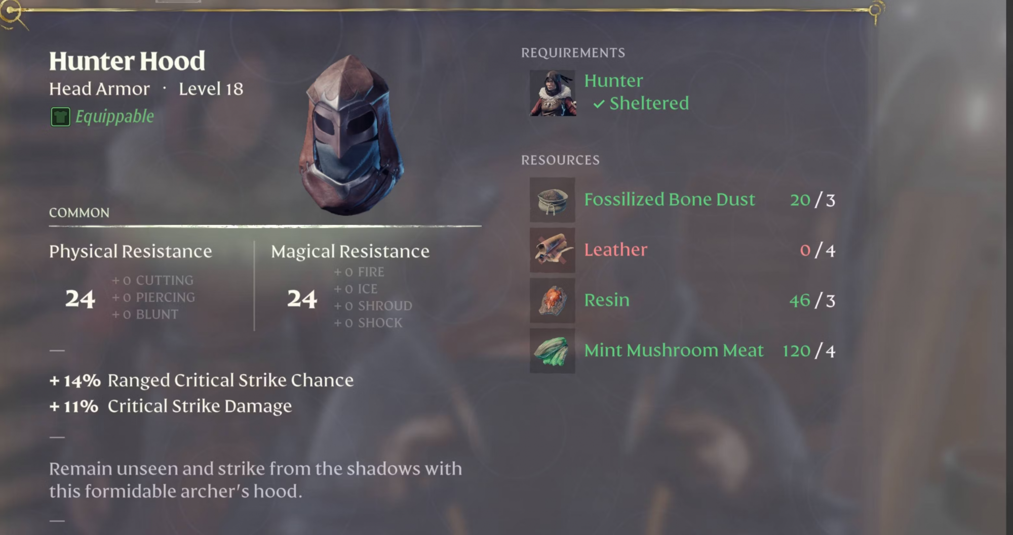 Мякоть мятного гриба используется для улучшения снаряжения рейнджера в Enshrouded. Оно понадобится вам для создания брони охотника и снайпера у NPC-охотника. Сначала вам нужно выполнить несколько предварительных заданий, например, разблокировать Алтарь пламени хотя бы до 4-го уровня и отправиться в Нагорье кочевников, биом на востоке карты. Именно здесь вы найдете enshrouded зоны с мятными грибами - большими зелеными грибами, которые можно собирать с помощью топора.