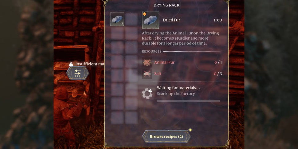Как только вы получите соль, вам захочется превратить обычный мех животных в сушеный мех.