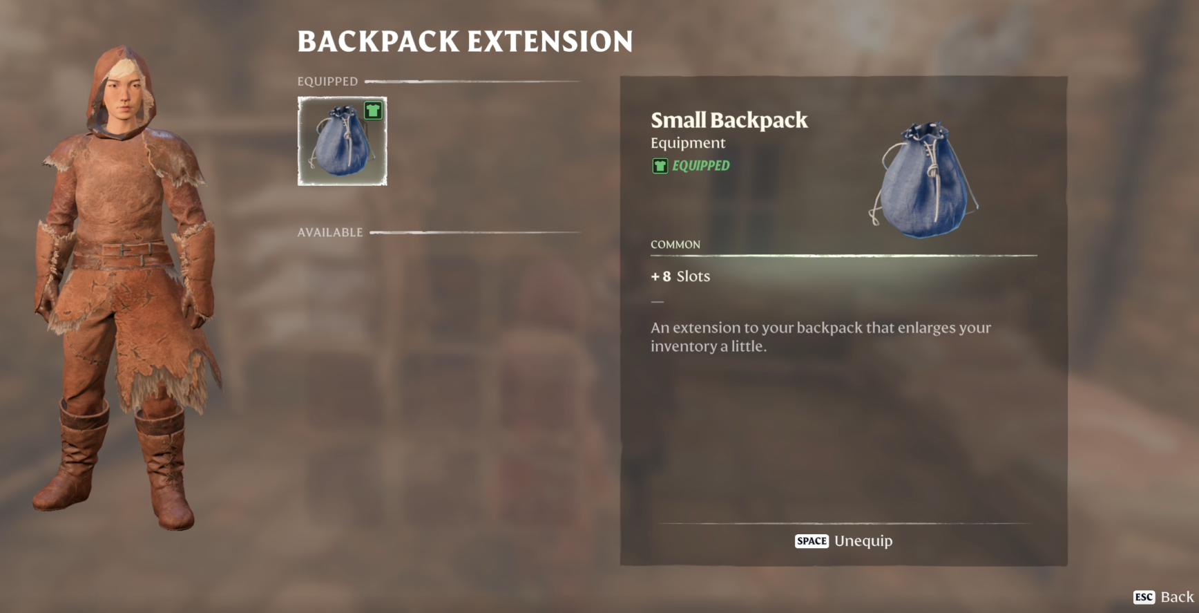 После того как обновленные вещи будут изготовлены, не забудьте экипировать их на экране персонажа, чтобы воспользоваться преимуществами большего пространства в инвентаре. Теперь вам не придется быстро возвращаться на базу, чтобы освободить место для следующего похода за ресурсами.