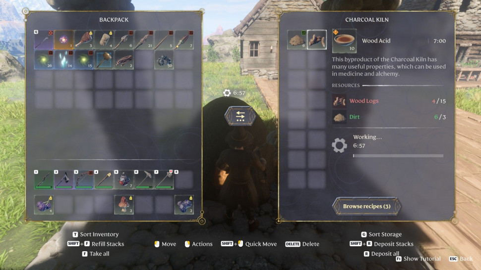 Древесная кислота производится в печи для обжига древесного угля. Это ремесленная станция, которую можно разблокировать сразу после размещения кузнеца на базе. Чтобы изготовить печь для обжига древесного угля, вам понадобится всего 20 камней. После того как печь будет изготовлена у NPC, вы сможете разместить ее в любом месте по своему усмотрению.