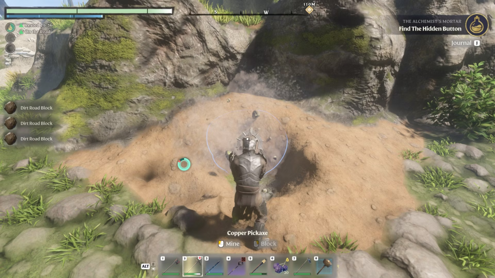 К счастью, дороги, которые вы прокладываете, также дают вам бафф "В пути", который снижает затраты выносливости на спринт. К сожалению, ставить блоки и выравнивать местность можно только в зоне действия алтаря пламени. Если вы хотите терраформировать места за пределами своей базы, вам придется увеличить радиус действия Алтаря пламени или разместить временный алтарь рядом с нужным местом строительства.