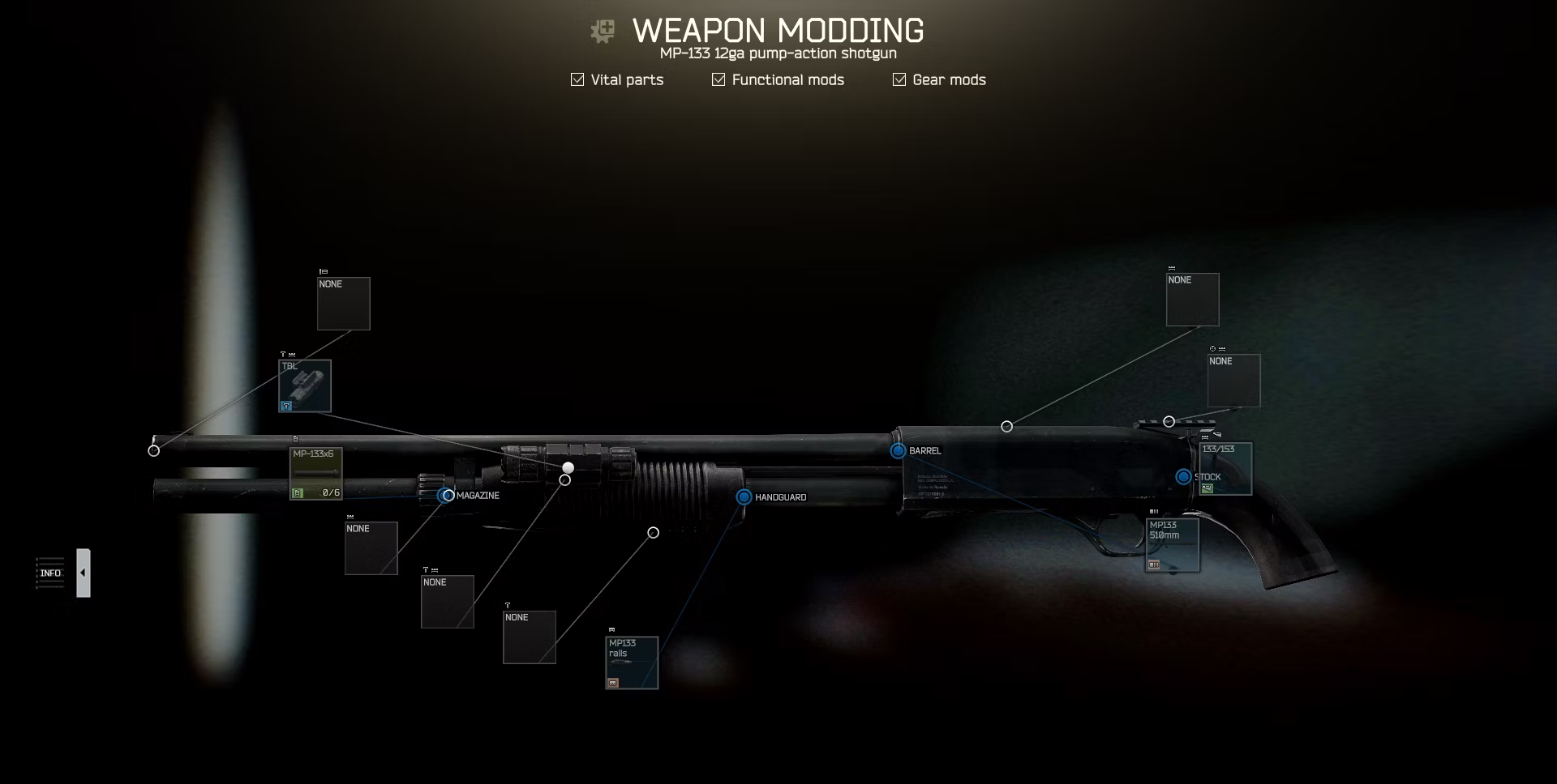 В этом задании вам предстоит модифицировать дробовик MP-133, чтобы он соответствовал следующим параметрам: