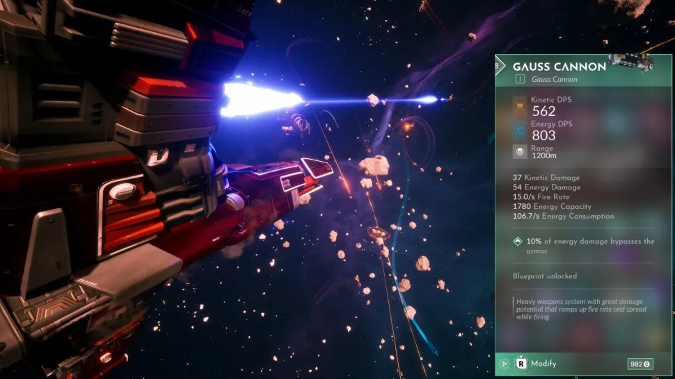 Гаусс-пушка - лучшее оружие ближнего боя в Everspace 2. Ей требуется время, чтобы разогнаться до максимальной скорости стрельбы, но когда это происходит, она наносит урон, как никакое другое оружие. Каждый выстрел из пушки Гаусса наносит огромный кинетический и энергетический урон. Способность "Преобразователь энергии" перехватчика составляет отличную комбинацию с гаусс-пушкой, так как она гарантирует большее время работы при максимальном темпе стрельбы.