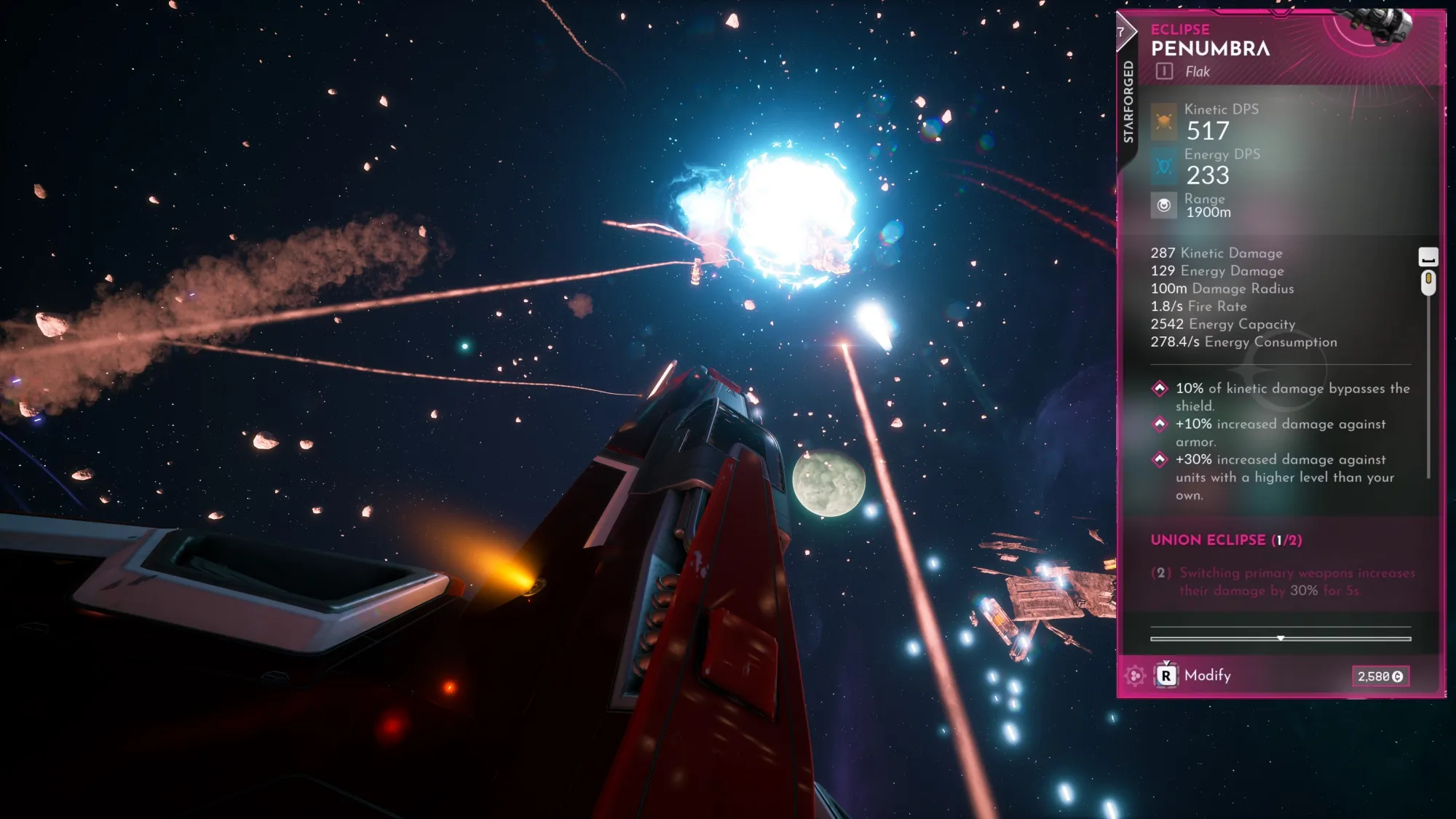 Пушка Flak - лучшее оружие средней дальности в Everspace 2. Она стреляет одной концентрированной очередью, которая взрывается при попадании, нанося урон в радиусе вокруг себя. Орудие Flak наносит невероятный кинетический урон, а также неплохой энергетический урон. У него большой запас энергии, поэтому из него можно стрелять много раз, прежде чем он иссякнет.