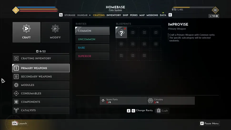 В продолжение предыдущего пункта, игроки также могут использовать систему ремесел для модификации и модернизации имеющегося снаряжения, повышая его редкость и/или уровень и добавляя катализатор для получения различных преимуществ. Для этих модификаций и улучшений требуются компоненты, которые можно приобрести в игровом мире или разобрав ненужное снаряжение.