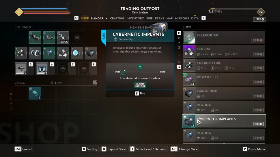 Их также можно выделить в инвентаре, чтобы увидеть полосу, показывающую диапазон от самой низкой цены до самой высокой цены во всем игровом мире, с выделением текущего региона. По возможности игроки всегда должны стремиться продавать любые товары в системах, где они пользуются большим спросом.