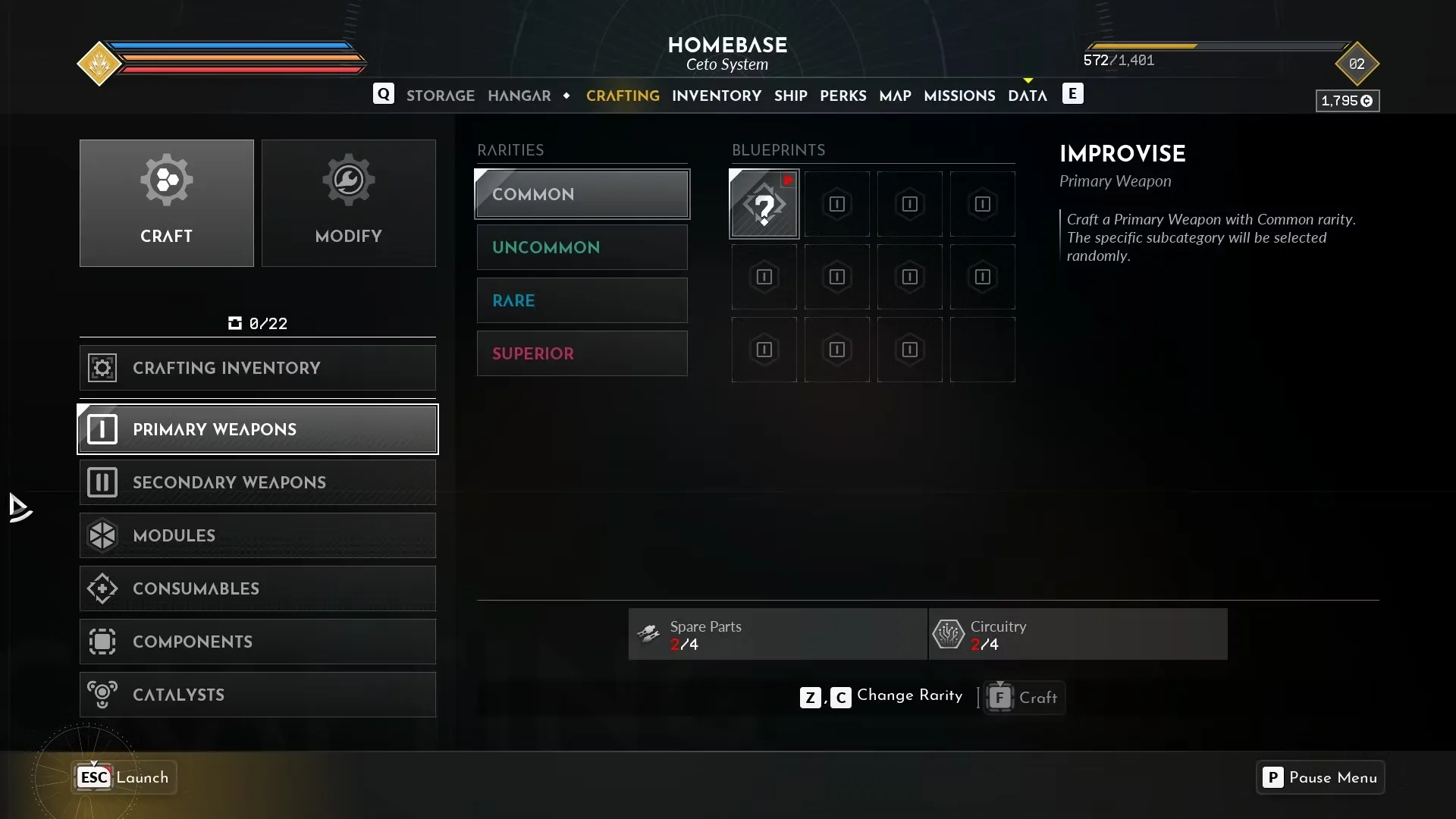 В продолжение предыдущего пункта, игроки также могут использовать систему ремесел для модификации и модернизации имеющегося снаряжения, повышая его редкость и/или уровень и добавляя катализатор для получения различных преимуществ. Для этих модификаций и улучшений требуются компоненты, которые можно приобрести в игровом мире или разобрав ненужное снаряжение.