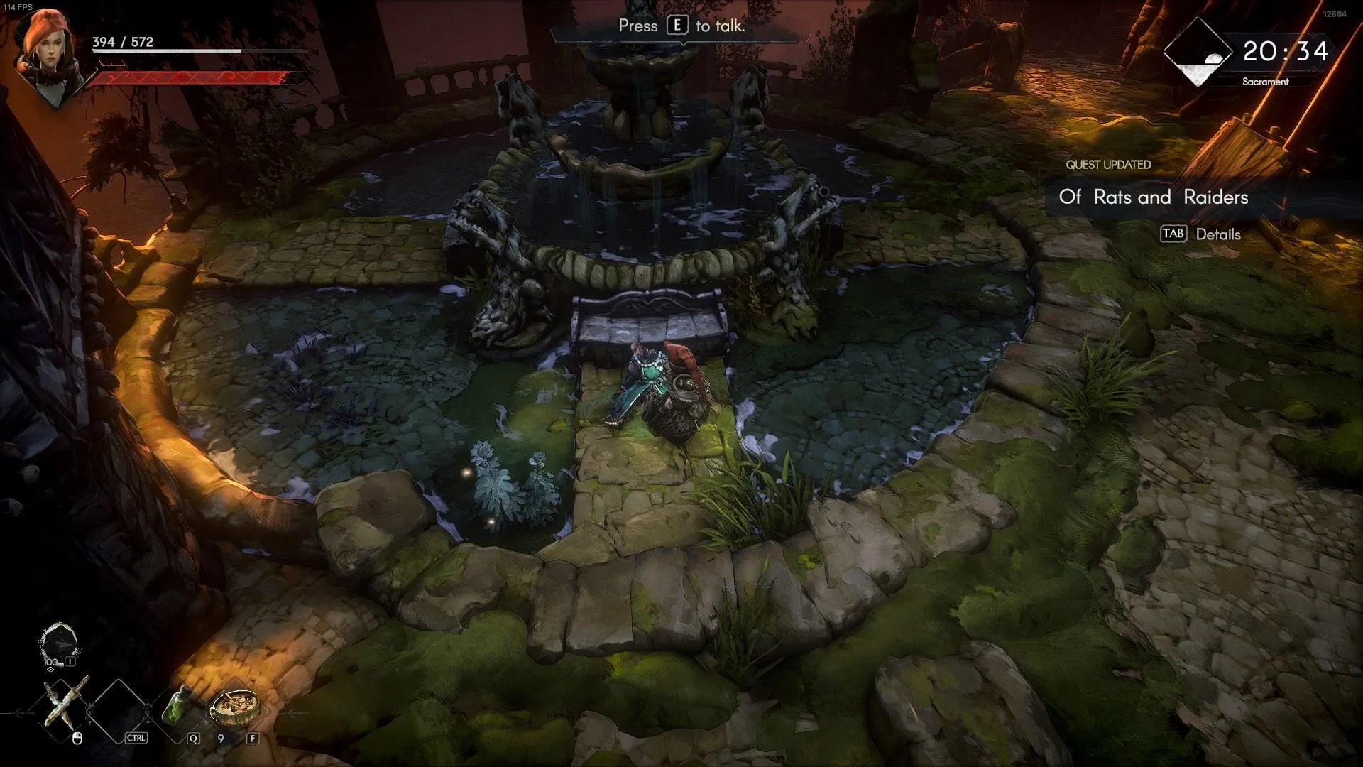 Фонтан можно найти в северо-западной части Sacrament, недалеко от кладбища и локаций подземелья Crucible. Добравшись до фонтана, вы обнаружите Жерара, спящего рядом со скамейкой, и, пообщавшись с ним, получите ключ от клетки Раттигана. Теперь вы можете вернуться, чтобы освободить Раттигана и продолжить квест «Of Rats and Raiders», который в итоге приведет вас в зону «Черная траншея» в канализации Sacrament. Здесь нет выбора, и вам придется продолжить этот путь, если вы хотите продвинуться по сюжету игры. Здесь вы найдете краткое описание того, как освободить Раттигана из клетки: