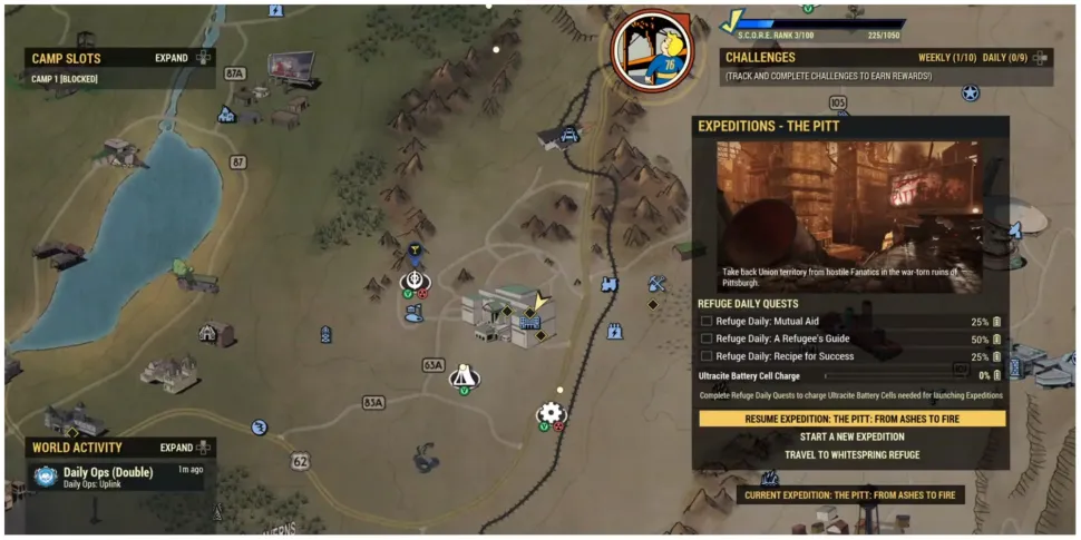 У высокоуровневых игроков есть возможность начать миссию "Экспедиция" или принять участие в чужой. Для этого отправляйтесь на курорт Уайтспринг, выполните ежедневные задания Refuge и нажмите "Начать экспедицию" на карте, когда батарея Vertibird зарядится. Или просто нажмите "Общественные команды" и присоединитесь к экспедиции другого игрока.