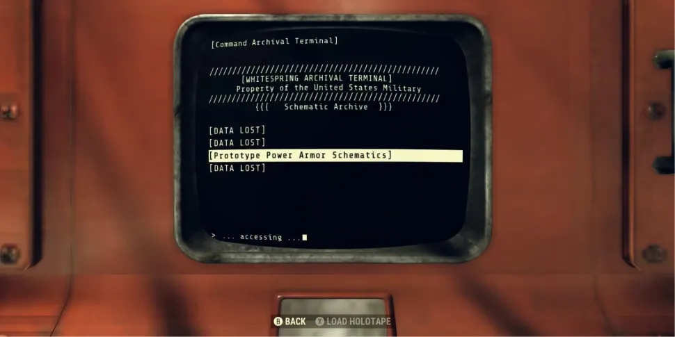 Архивный терминал перенесет чертежи X-01 в инвентарь, чтобы игроки могли построить силовую броню на станции.