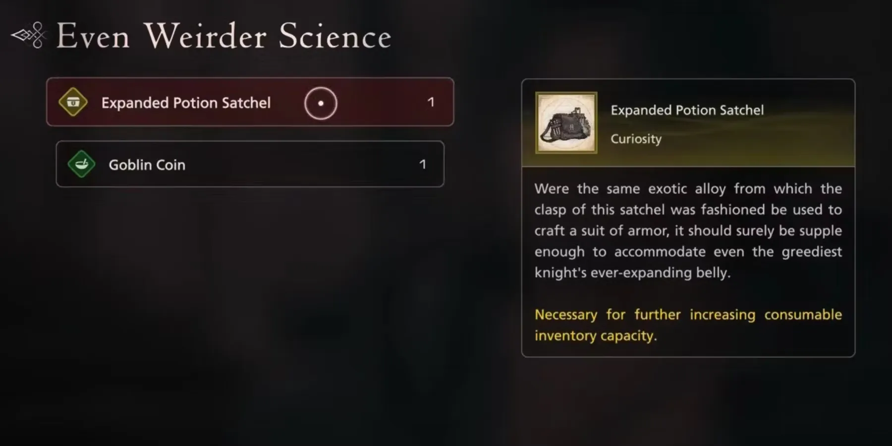 После того как Клайв приобретет все три сферических эха, он может вернуться к Овайну, чтобы завершить побочный квест "Еще более странная наука". Чтобы отблагодарить Клайва за помощь, Овайн наградит его расширенной сумкой для зелий и гоблинской монетой.