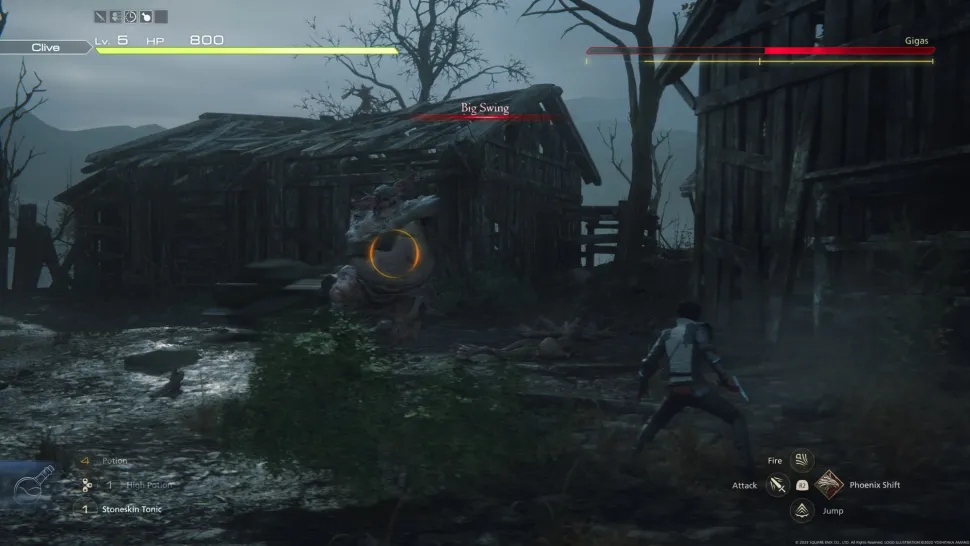 - Гигас также будет атаковать Клайва, если между ними достаточно расстояния, поэтому отойдите в сторону, чтобы избежать контакта, и используйте огонь/фиру для нанесения дальнего урона.
