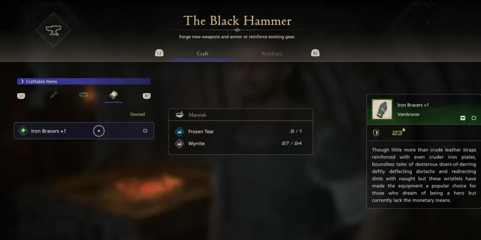 Поговорите с кузнецом Блэкторном, чтобы узнать о создании и укреплении доспехов. Игроки получат материалы для изготовления Железного пояса+1, который служит небольшим улучшением. Когда игроки соберут больше материалов, они смогут вернуться к Блэкторну, чтобы улучшить свое снаряжение и изготовить новые доспехи.