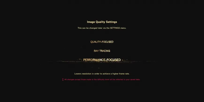 Игрокам будет предоставлено три варианта выбора качества изображения, причем наилучшая настройка, скорее всего, будет определяться аппаратным обеспечением и дисплеем, на котором будет проходить игра. "Ориентированная на качество" - лучший вариант для тех, кто хочет играть в игру в 4K со стабильной частотой кадров, в то время как "Ориентированная на производительность" ставит во главу угла частоту кадров в ущерб графической достоверности. "Трассировка лучей" предлагает значительно лучшие эффекты освещения, которые улучшают общую визуальную составляющую, хотя это происходит за счет потери нескольких кадров.
