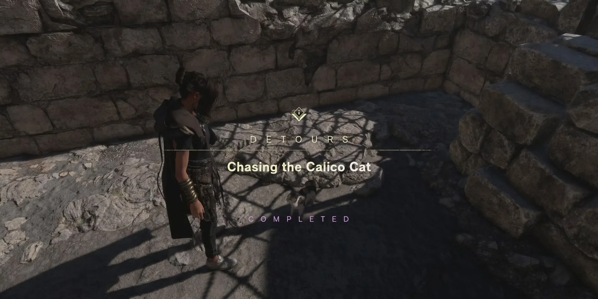 Однако на данный момент единственное, что действительно стоит сделать, - это отыскать кошку к северу от главного квестового маркера. Она отмечена на карте значком, немного похожим на букву i, и ее можно легко отследить, поставив маркер. Следование за кошкой приведет игроков к макаке: специальному предмету, который можно обменять на специальные предметы чуть позже в игре. Это также считается одним из многочисленных обходных путей, которые фактически служат побочными заданиями в Forspoken.