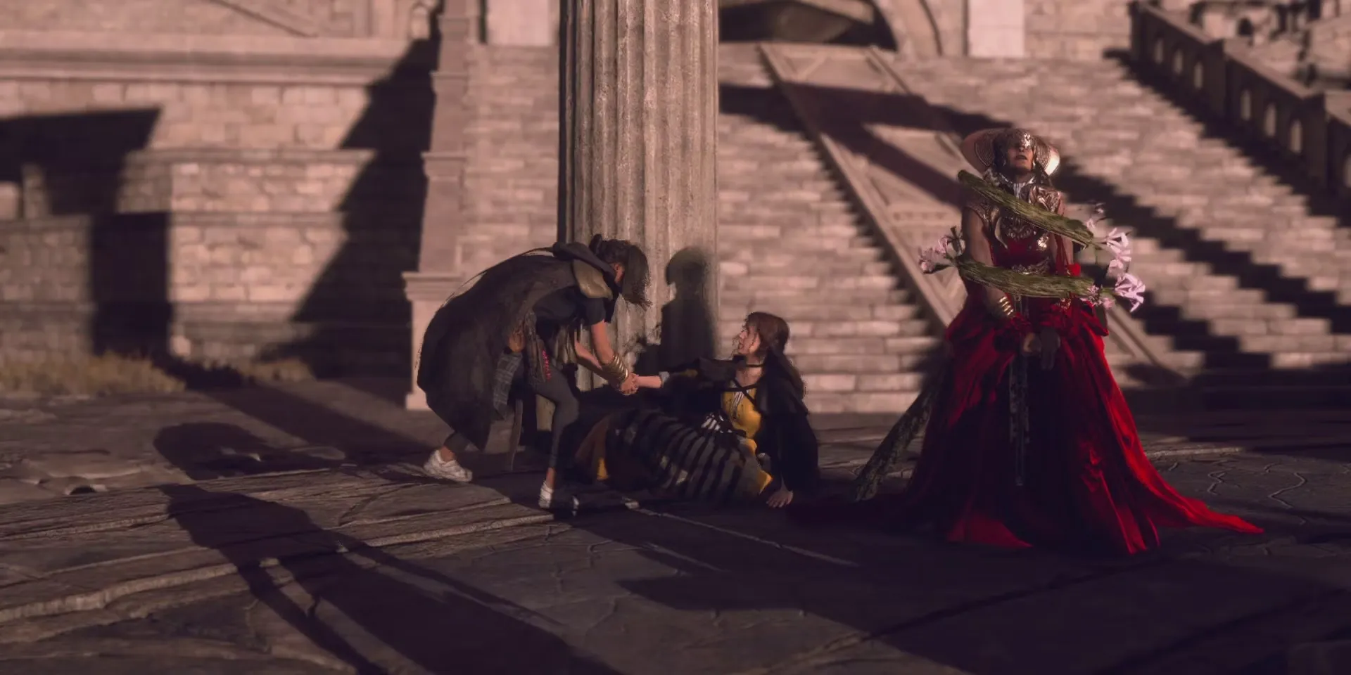 Как только игроки поднимутся на вершину, начнется сцена, и их познакомят с Робианом. Оказывается, отец Одена все это время был жив, хотя сказать, что он немного похудел, было бы, пожалуй, преуменьшением. После окончания сцены игрокам следует вернуться на улицу, где они столкнутся с группой рыцарей-изгнанников. Быстро становится ясно, что эти парни не собираются шутить, поэтому игроки должны быть готовы к бою.
