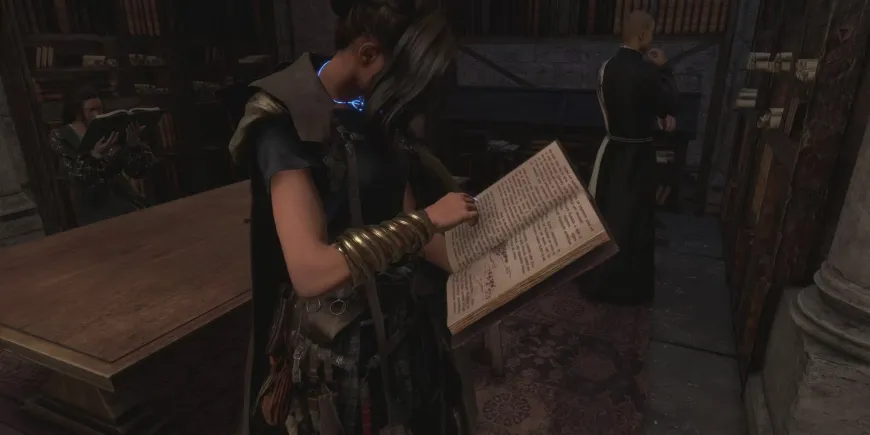 Джохеди предлагает Фрей почитать некоторые книги и свитки, разбросанные по Архиву, чтобы узнать больше о Тантасе, что игроки и должны сделать. Всего есть четыре или пять вещей, которые нужно изучить, так что игрокам нужно будет просто продолжать рыться в них, пока они не найдут их все. Они также получат возможность выполнить несколько заданий по заклинаниям, взаимодействуя с книжным шкафом с драгоценным камнем бирюзового цвета на самом верху в дальнем конце архива.