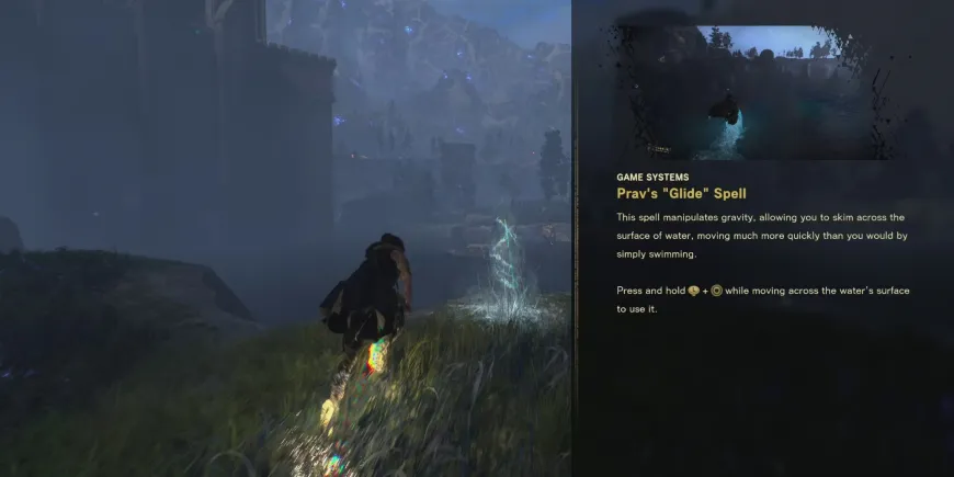 Расправившись с врагами, игрокам нужно будет взобраться на каменную стену слева от близлежащих водопадов, которая приведет их к гигантскому озеру у замка Авоалет. Здесь им будет предложено опробовать заклинание "Скольжение" Правы, которое можно использовать, удерживая кнопку "Круг" (PlayStation) или "B" (Xbox) во время движения над водой. Это невероятно полезное умение, когда дело доходит до перемещения по миру Афии, хотя игроки должны следить за своей выносливостью при его использовании.