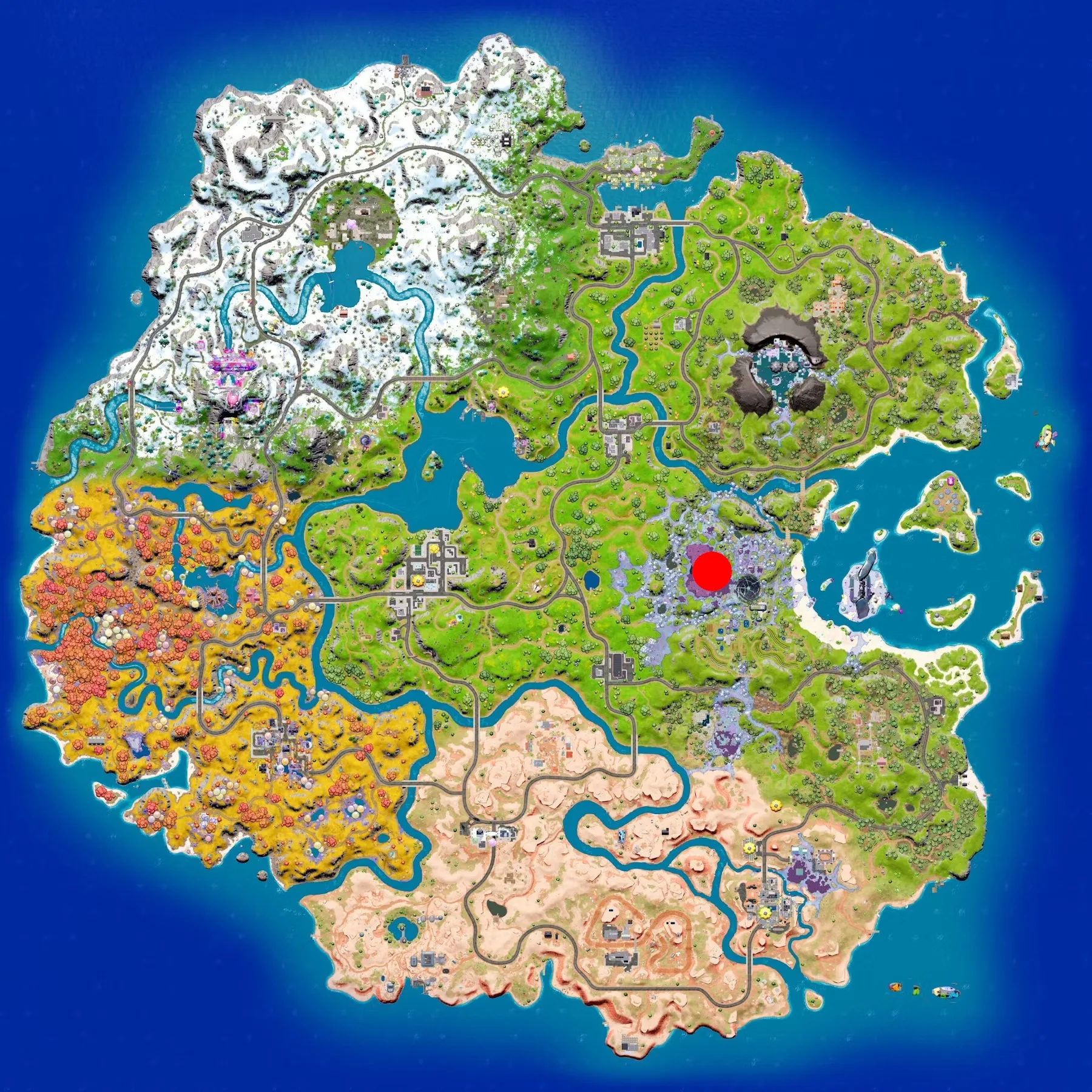 Лучшее время для выполнения этого задания - самое начало матча, и игрокам следует направить свои взоры на Святилище Геральда, когда они развернутся из боевого автобуса. Это названное место, отмеченное на карте, которая находится ниже, является точкой зарождения хромового торнадо, и игроки должны вступить с ним в контакт во время полета. Соприкосновение с торнадо не только покроет игрока хромом Fortnite, но и даст фанатам вертикальный толчок, позволяя им достичь структуры, которая облегчит падение.