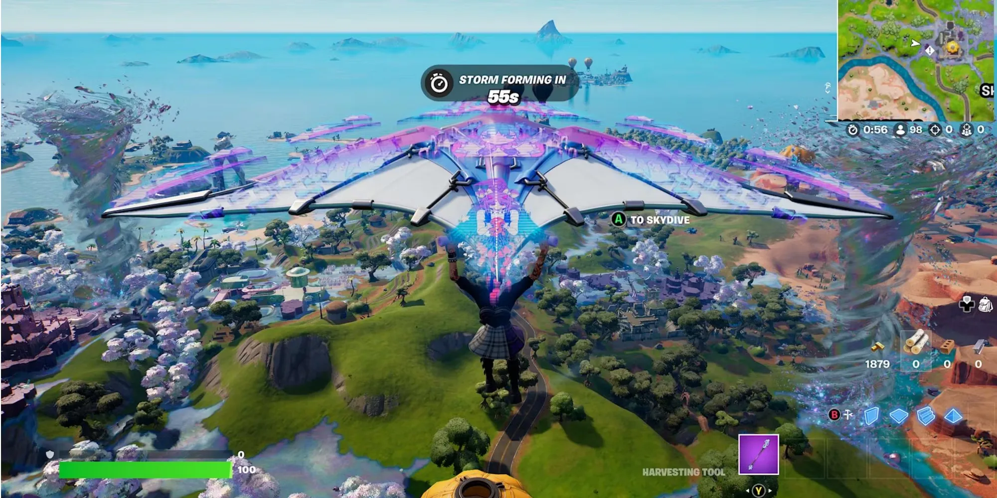 Чтобы попасть в Chrome Vortex, игрокам придется подойти к нему либо с земли, либо пролететь рядом. Вихрь притянет к себе, и игрока почти мгновенно засосет в него. Чтобы набрать высоту, из-за его недостаточной мощности по сравнению с предыдущими торнадо в Fortnite, игрокам придется немного парить вокруг него.