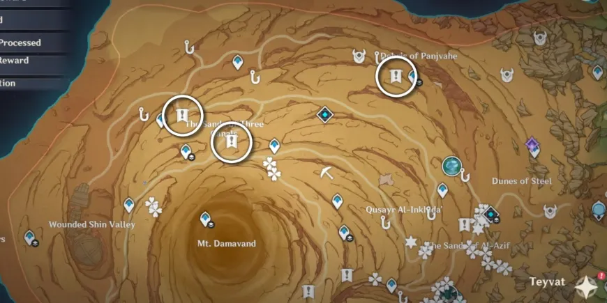 Все локации Первобытных обелисков в пустыне Genshin Impact 3.4