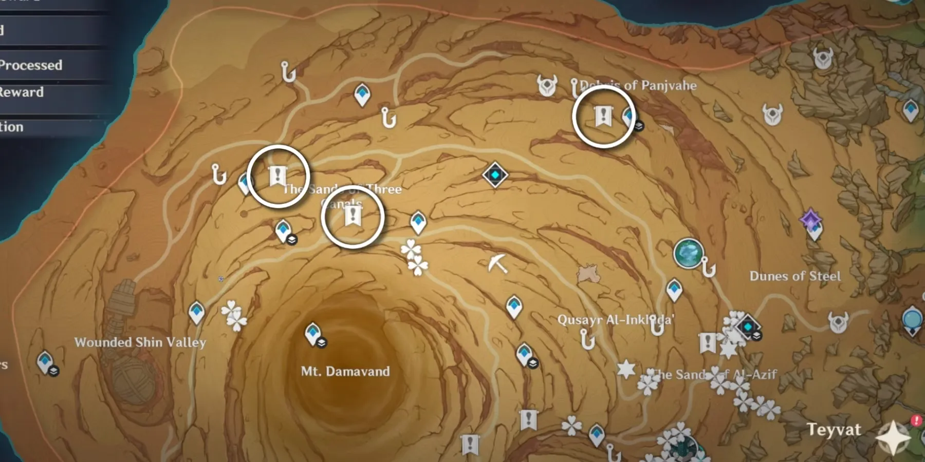 Все локации Первобытных обелисков в пустыне Genshin Impact 3.4