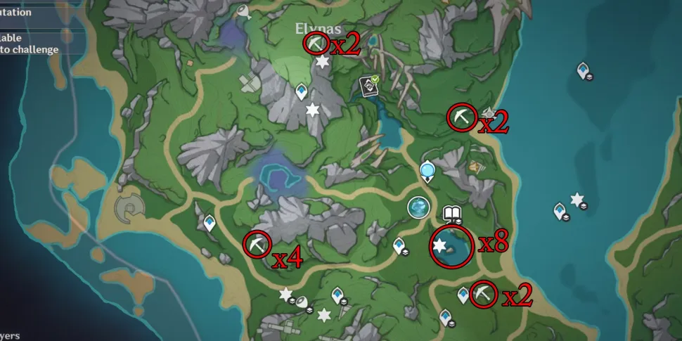 - Отправляйтесь в домен Echoes of the Deep Tides в Genshin Impact и идите на юг возле гор, чтобы найти шесть кристаллов.