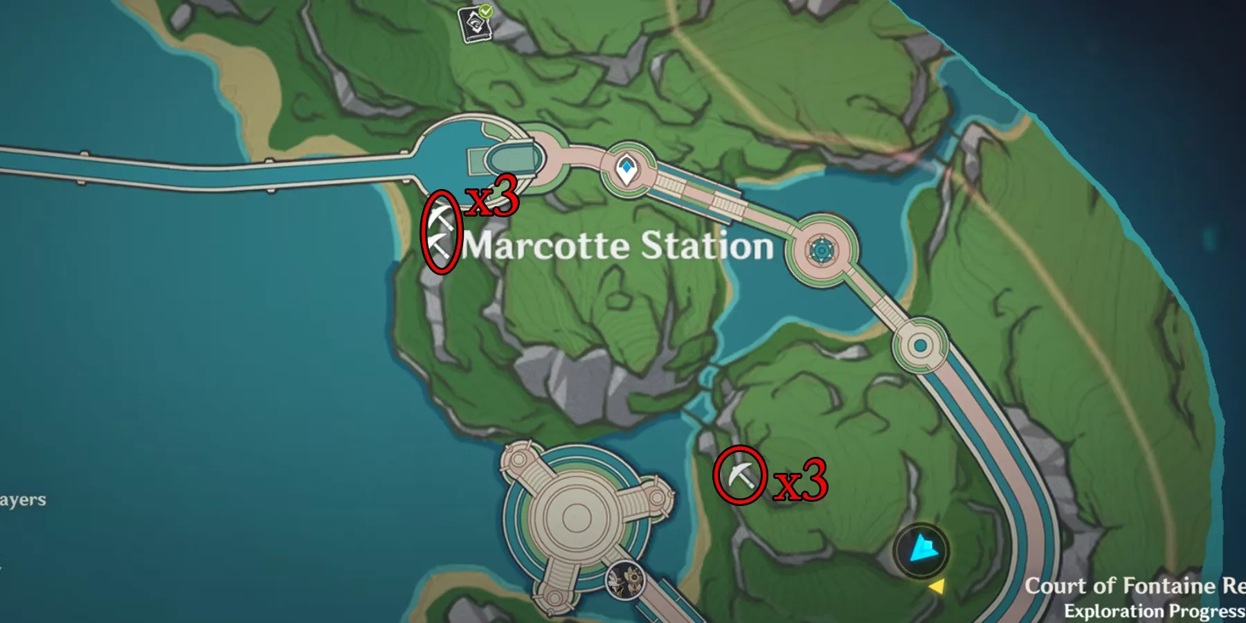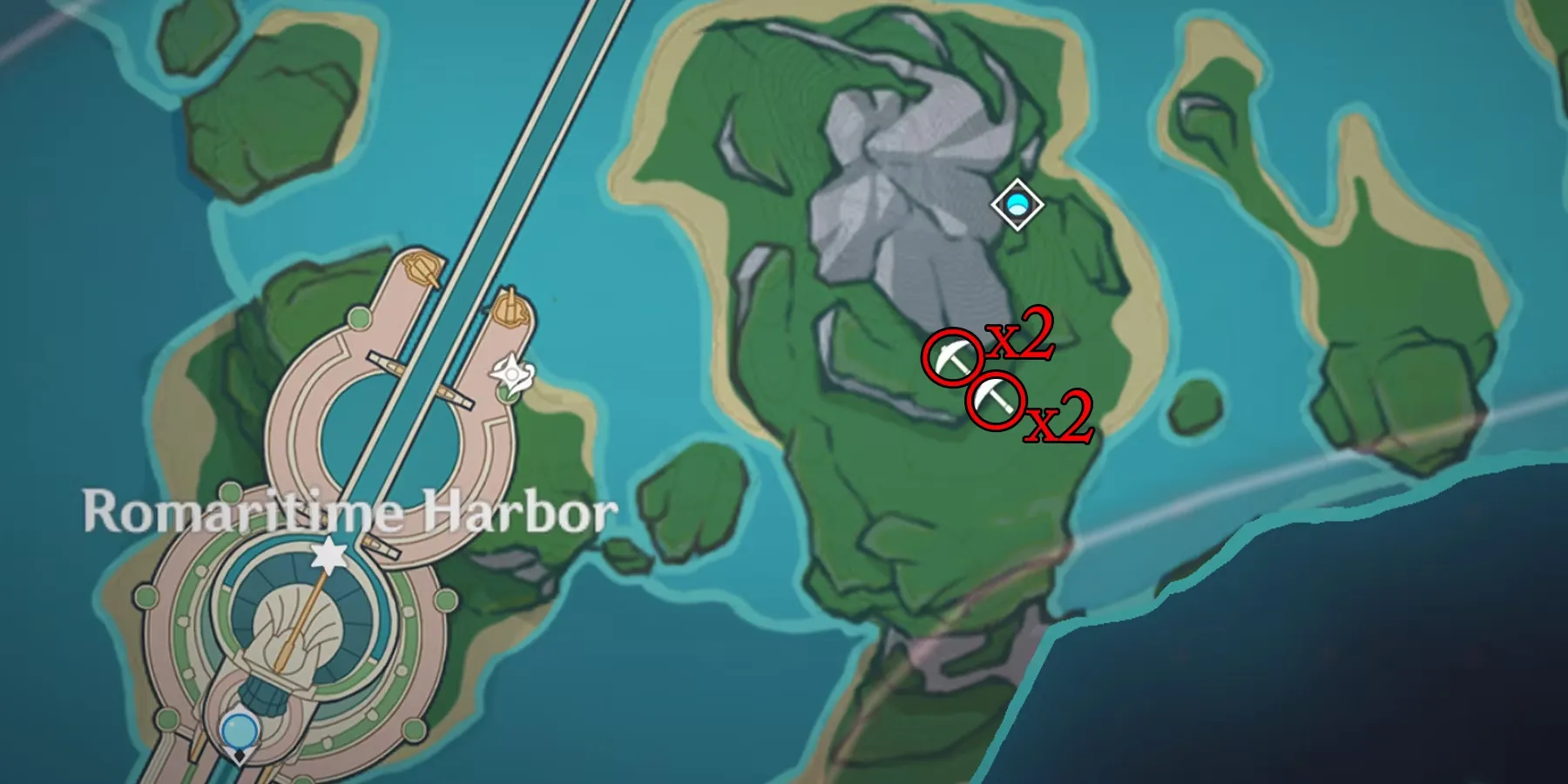 - Отправляйтесь к статуе Семи в Genshin Impact и пройдите немного на северо-восток, чтобы найти еще два кристалла.