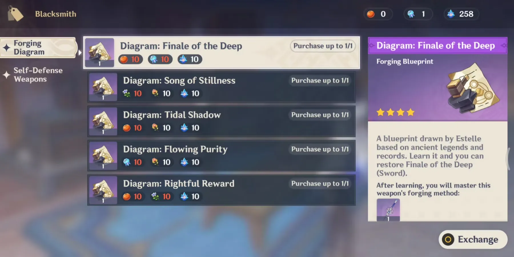 Как уже упоминалось, конденсирующиеся кристаллы используются для покупки Диаграмм оружия у кузнеца Эстель в Genshin Impact. Каждая из пяти диаграмм требует 10 кристаллов и два других материала. К счастью, для разблокировки диаграмм не требуется никаких специальных заданий. После того как Путешественник приобретет нужный Чертеж и решит его выковать, среди множества необходимых материалов обязательным условием будет наличие 50 конденсирующихся кристаллов.
