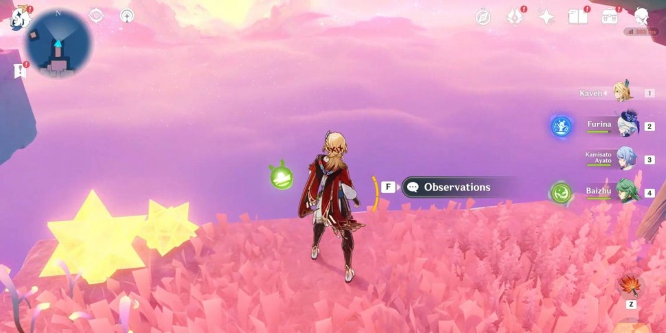 После выполнения мирового квеста вернитесь на Шепчущий остров и пройдите за среднюю статую. Подойдите к краю обрыва и взаимодействуйте с диалогом «Наблюдения». Затем спрыгните с уступа, и вы тут же превратитесь в звездный след. В результате вы пролетите под островом и попадете в небольшую трещину.