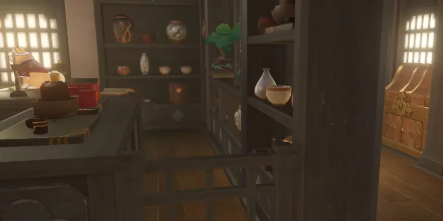 Сокровищница ученого: Символизируя глубокую культуру Иназумы, связанную с накоплением знаний и опыта, предметы, включенные сюда, отражают более академическую сторону региона. Среди предметов - книжные шкафы, длинный стол для чтения и набор для каллиграфии.