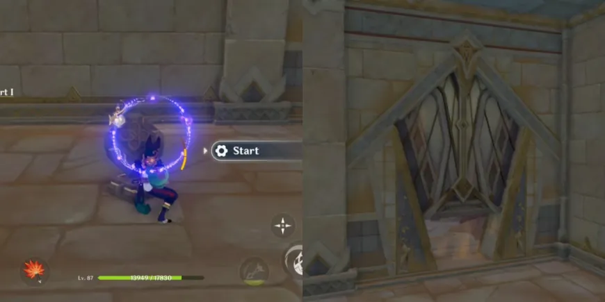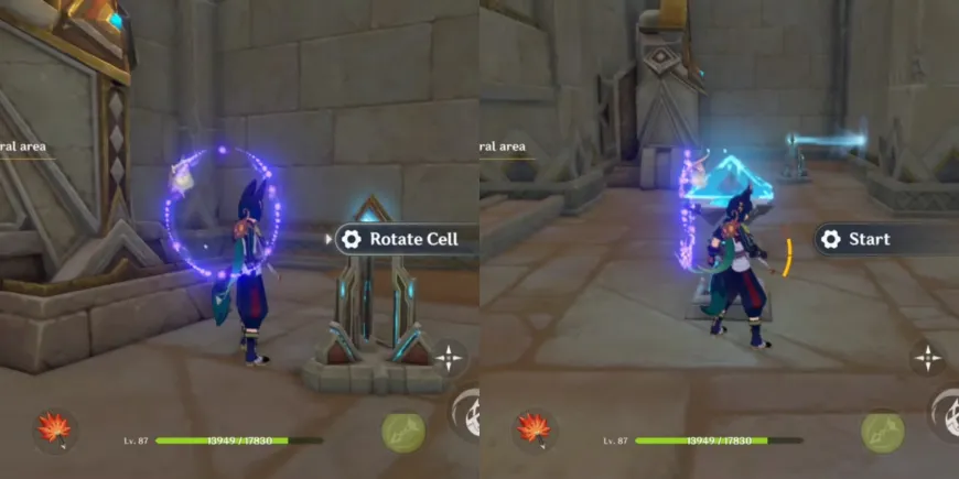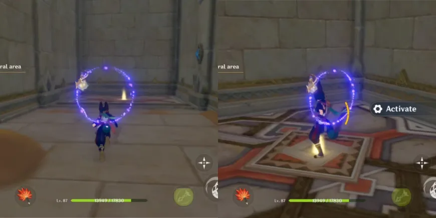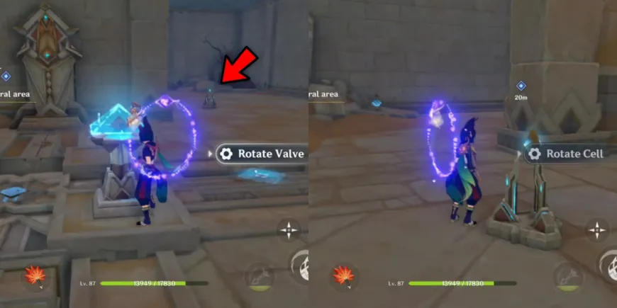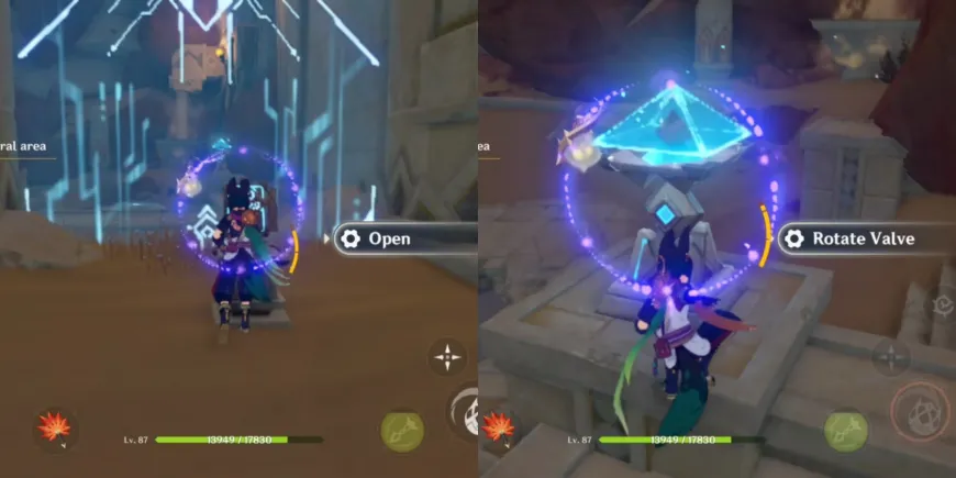 После того как механизм во второй комнате будет разблокирован, используйте кнопку пуска, чтобы открыть соседнюю дверь и откачать песок из центральной области в Genshin Impact. Теперь игроки могут спуститься на дно отверстия и исследовать это место вместе с Лилупаром и Джехтом.