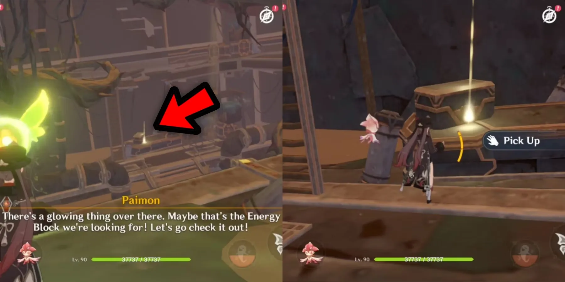 Проводив Хварена до двери, Паймон заметит светящийся предмет. Поднимите его, чтобы получить энергетический блок, необходимый для выполнения квеста As The Khvarena's Light Shows: Ниродха в квесте Genshin Impact.