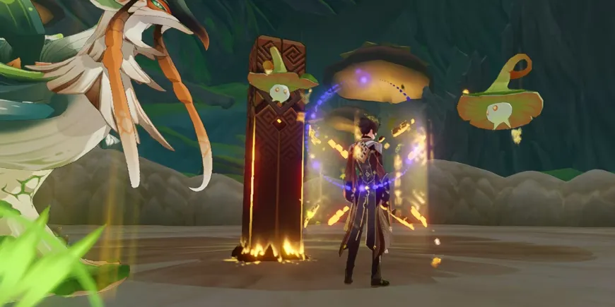 Игроки могут попасть к Jadeplume Terrorshroom через секретный портал, а победа над боссом требует определенного понимания реакций элемента Дендро в Genshin Impact.