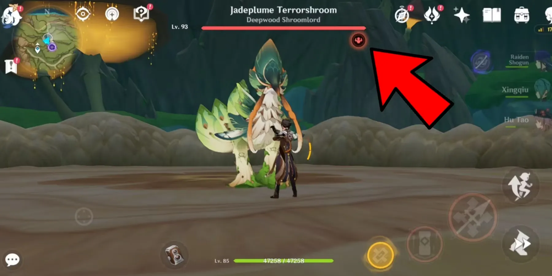 Игроки могут найти Jadeplume Terrorshroom в Genshin Impact на западной стороне Сумеру, рядом с зоной Ванараны. Чтобы попасть к Jadeplume Terrorshroom в Genshin Impact, игрокам нужно найти фиолетовый портал к юго-востоку от маркера босса. Просто войдите в него, и путешественники будут телепортированы рядом с точкой телепорта в область босса.