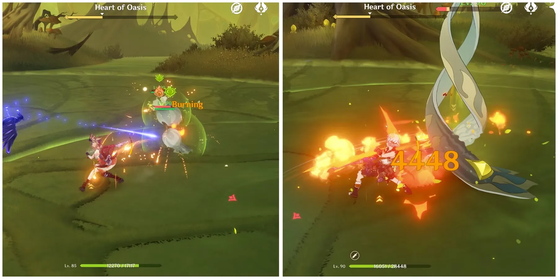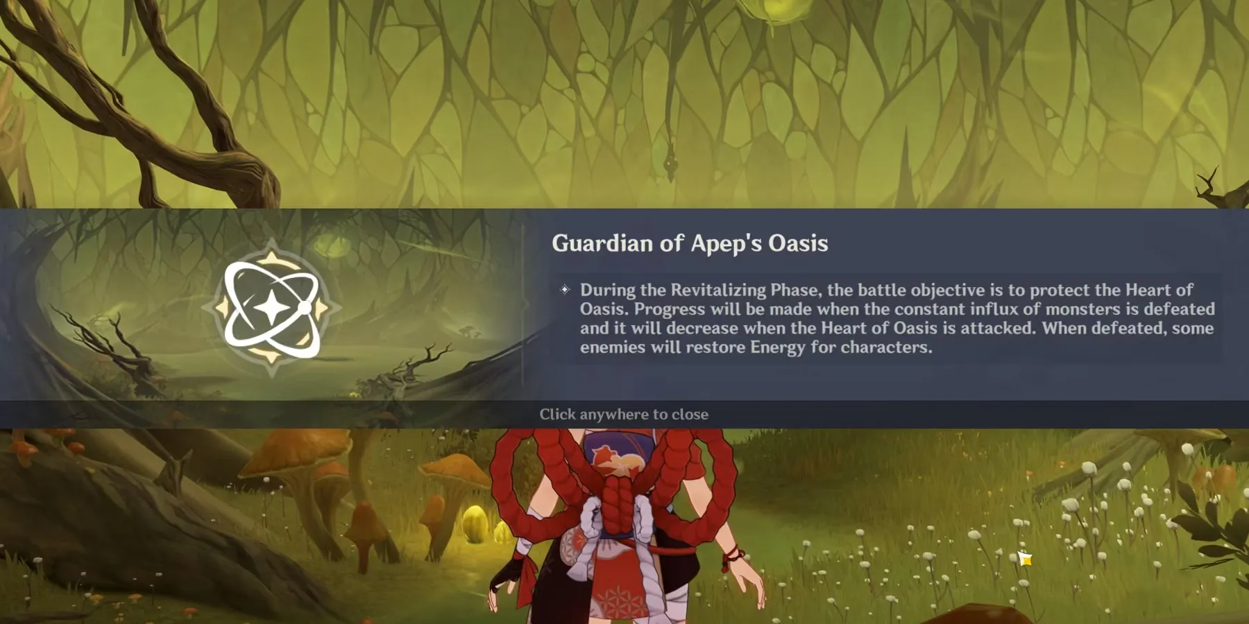 После победы над Хранителем последнего оазиса, Сердце оазиса упадет вниз, и вокруг него начнут собираться монстры. Враги будут отдавать предпочтение Сердцу и пытаться опустошить его счетчик. Игроки могут защитить счетчик, быстро побеждая волны монстров, приближающихся к Сердцу. Они также могут управлять монстрами, используя способности Анемо или вызывая Элементарные реакции, такие как Заморозка или Перегрузка.