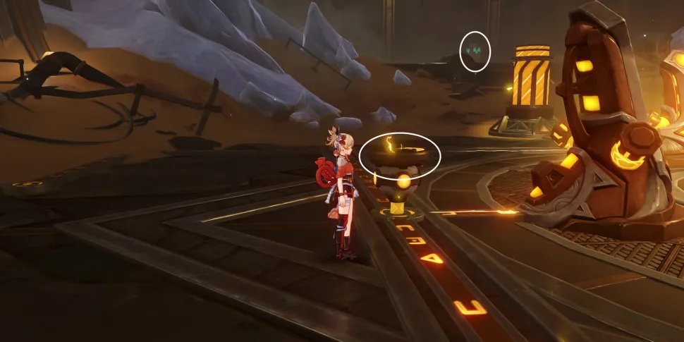 Затем путешественникам нужно переместить миксер с устройства через монумент Анемо на устройство на другой стороне цепи. Поворачивайте Миксер, пока он не будет направлен на Устройство, чтобы активировать его. Что касается третьего устройства, то для него не требуется смеситель, так как энергия проходит через него сразу же благодаря системе контроля энергии, расположенной за ним.