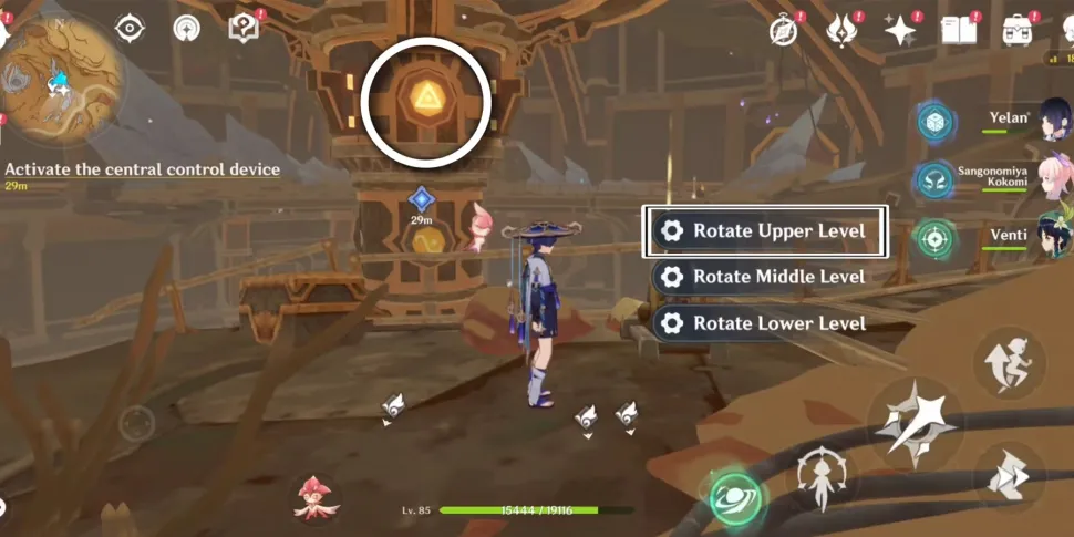 Как только три устройства возле лифта будут активированы, игроки получат новое задание - активировать центральное устройство управления в Genshin Impact.