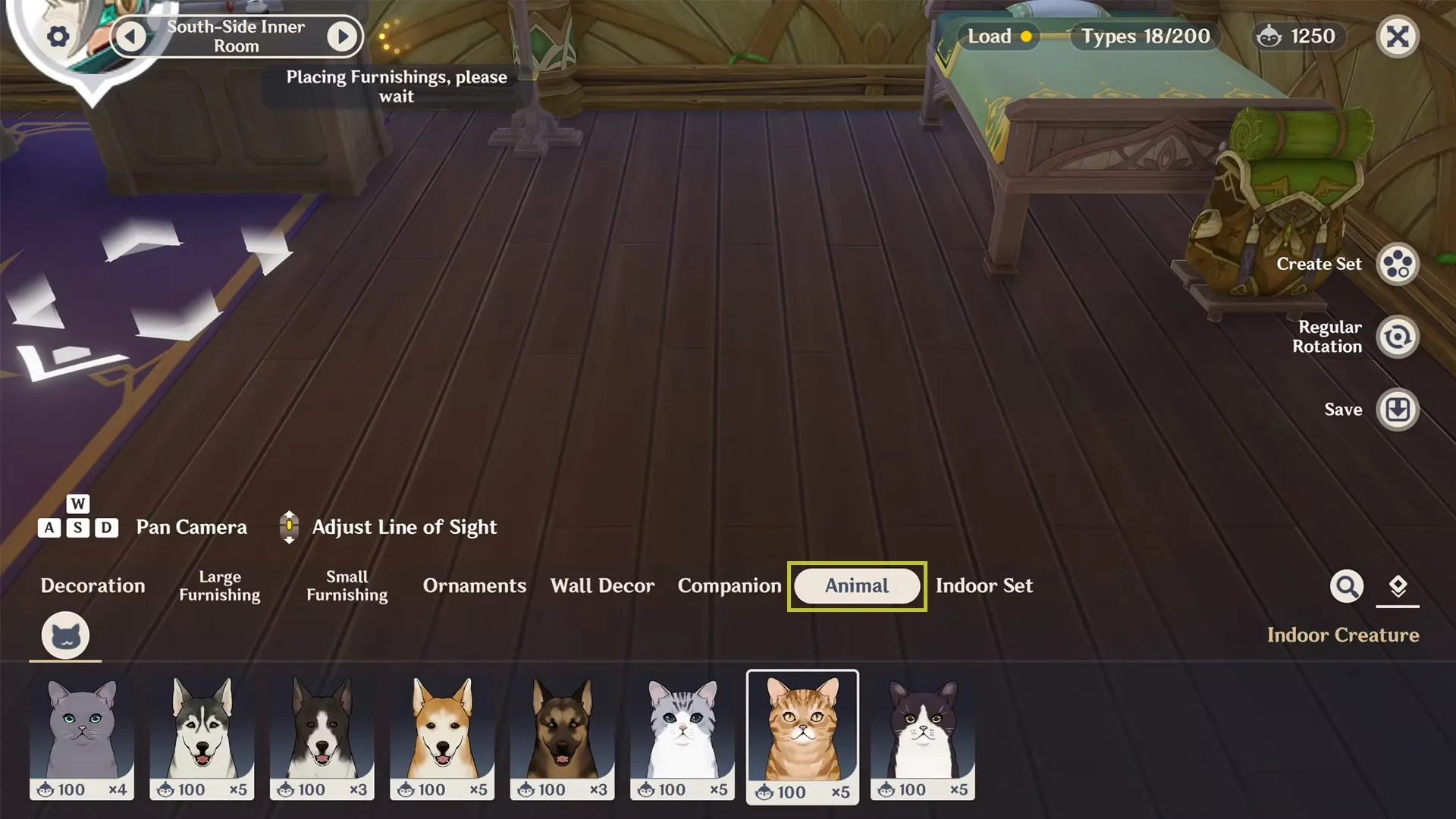 После того как игрок приобрел питомца, он может поместить его в свой горшок Серенитеи. Для этого игроку необходимо открыть меню "Правка", обозначенное значком в виде указывающей руки в правом верхнем углу экрана. Отсюда следует перейти на вкладку "Животное" меню размещения предметов обстановки. Чтобы разместить животное, игроки могут щелкнуть или перетащить значок животного, чтобы вызвать его в горшок Серенитеи. Питомцев можно поворачивать и точно размещать в меню "Правка", но после возвращения в игровой процесс они будут свободно перемещаться по локации.