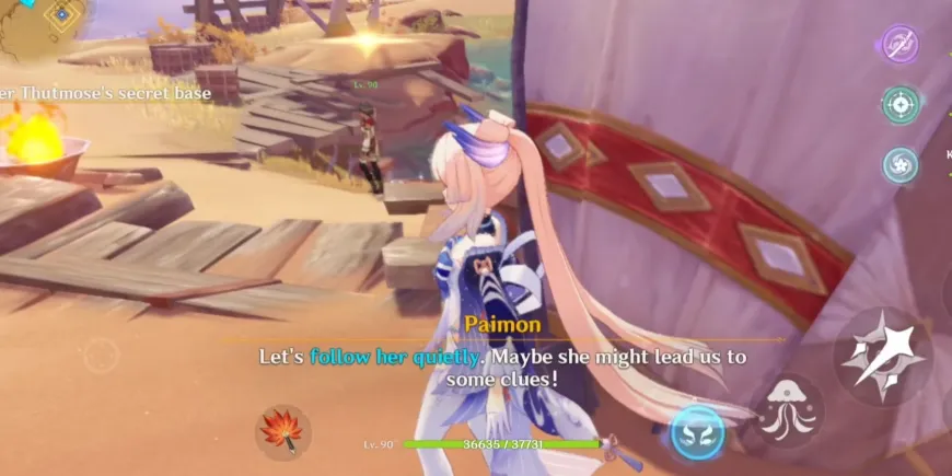 Конечно, как и у Корпуса Тридцати есть своя организация, существуют и группы эремитов. Одна из них - Thutmose, и их тайную базу можно найти где-то в пустыне. Известно, что эта группа проявляет большой интерес к Алому королю, и один из ее бывших членов - не кто иной, как Джебраил, солдат, нанятый Тирзадом для помощи в его исследованиях. Позже, в квесте "Мир желаний Сохейла", игроки Genshin Impact должны проникнуть на секретную базу Тхутмоса. Но прежде чем Путешественники смогут это сделать, они должны сначала узнать пароль от двери.