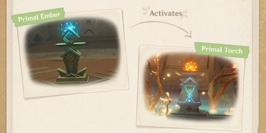Чтобы пройти вглубь руин по квесту "Секрет Аль-Ахмара" в Genshin Impact, игрокам необходимо найти два первобытных огня и проследовать к первобытным факелам перед главной дверью руин.