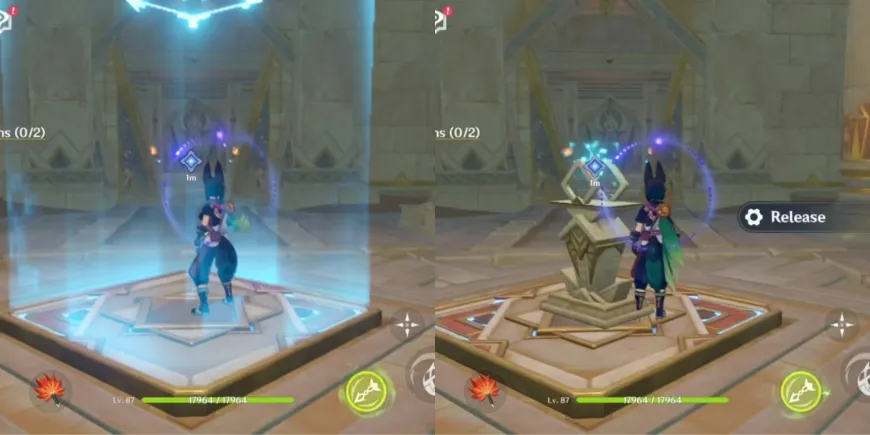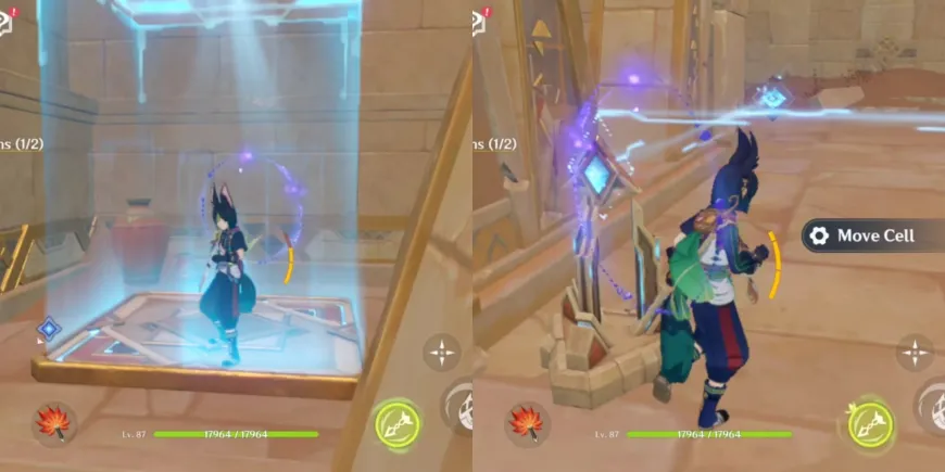 В этом месте игроки увидят четыре платформы, на каждой из которых установлен механизм Everlight Cells. Чтобы добраться до первого Первобытного эмбера, игрокам необходимо решить головоломку Genshin Impact в правой части комнаты (платформы C и D).