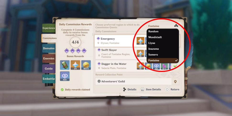 Как разблокировать ежедневные комиссионные в Фонтейн