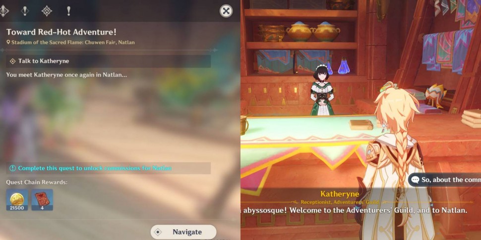 Первым шагом к разблокированию ежедневных заказов Натлана является выполнение квеста «Архон» Глава V: Акт I «Цветы, блистающие на солнце». Самое приятное в этом то, что игрокам не нужно проходить весь квест, чтобы разблокировать комиссионные.