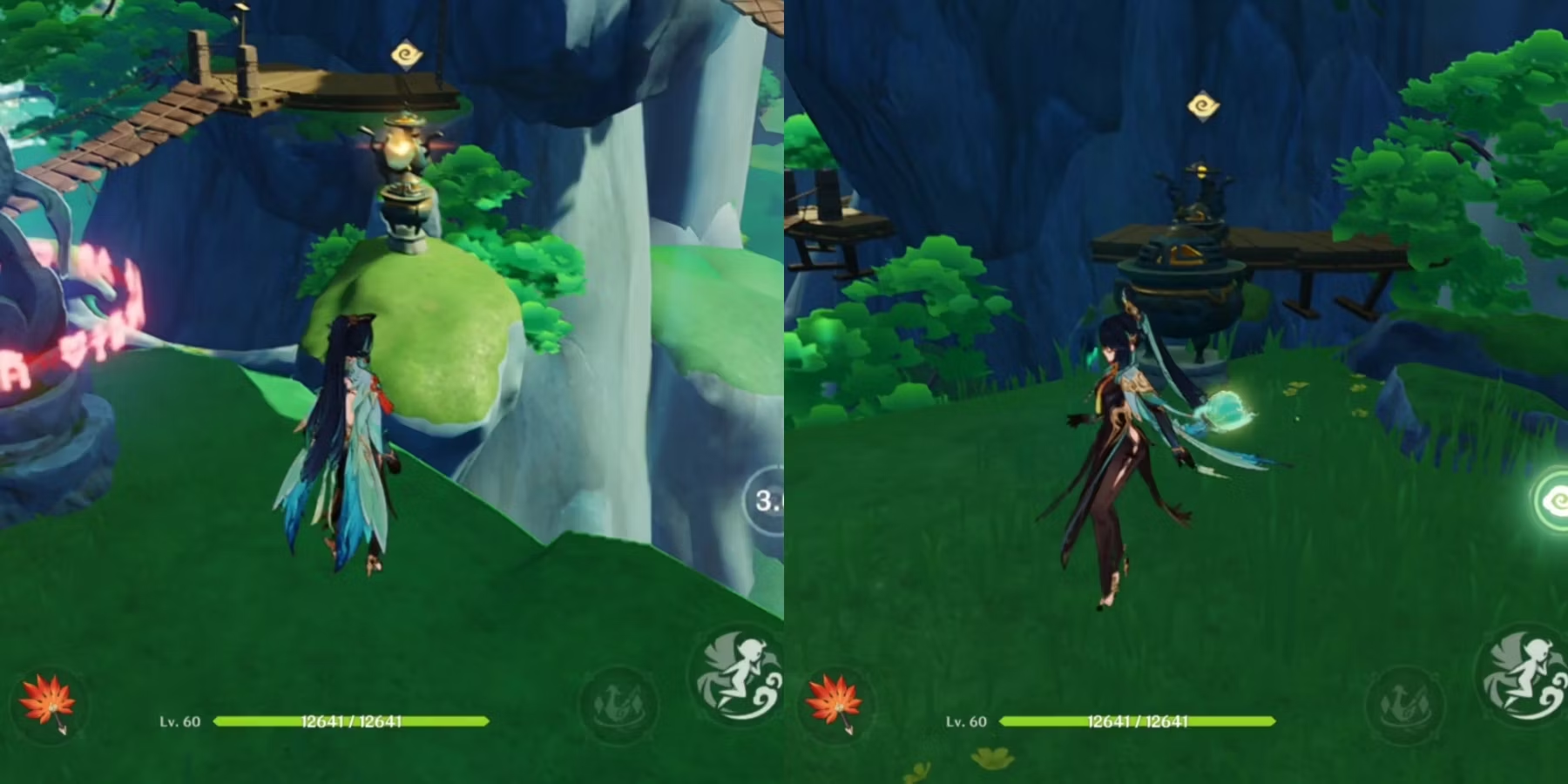 Последнее место находится к востоку/юго-востоку от второй Жемчужины духа. Здесь игрокам нужно просто сразиться с Хиличурлом, чтобы разблокировать статую карпа, а затем переместить Нефритовый каскад с одного склона скалы на другой. После этого переместите статую карпа так, чтобы вода снова коснулась ее.