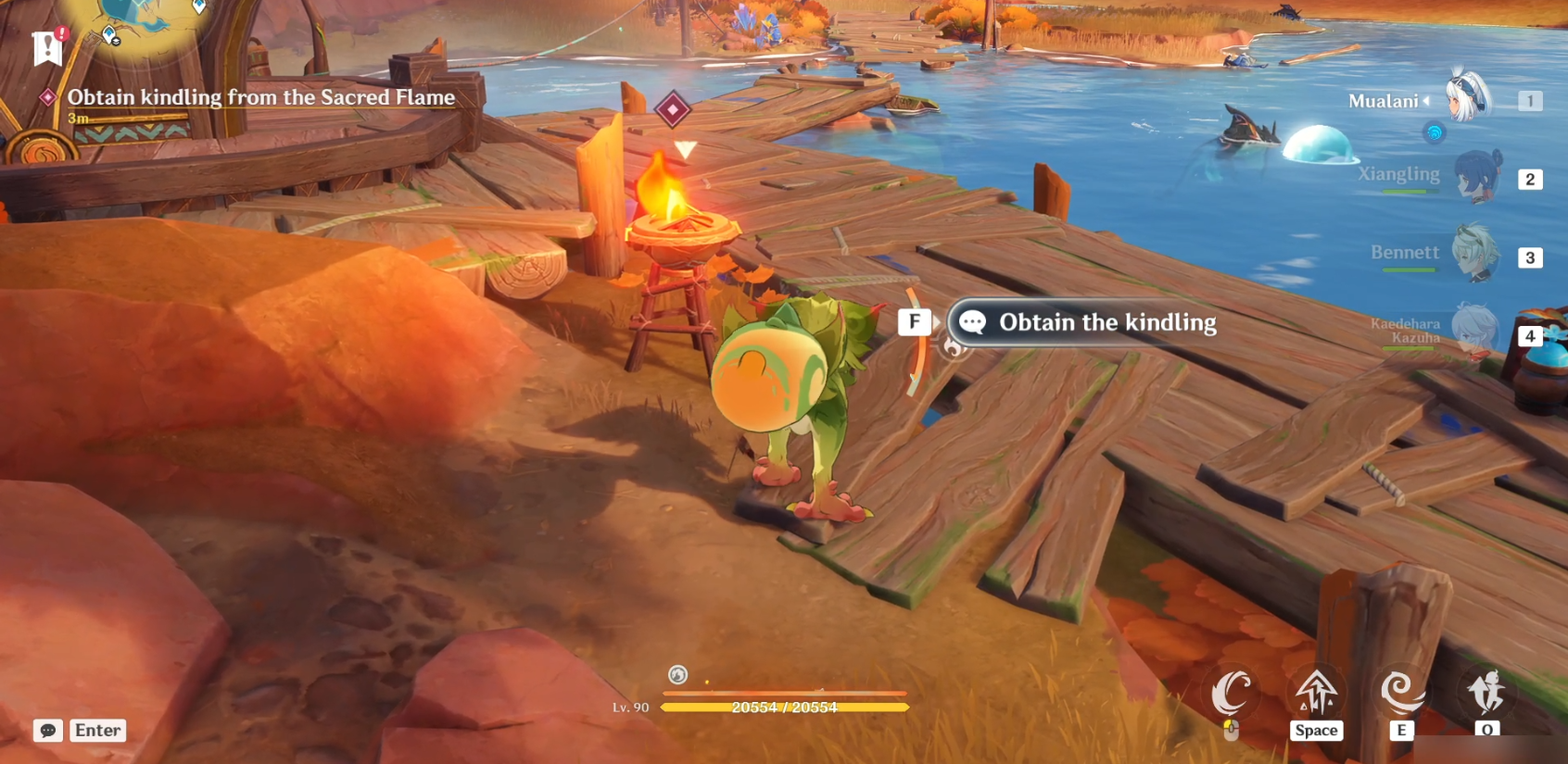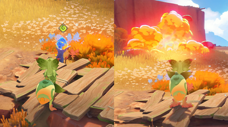 Вся головоломка «Всеочищающее священное пламя» состоит из умений юмкасавра. Нажав E, он может использовать свой навык, чтобы двигаться вперед.