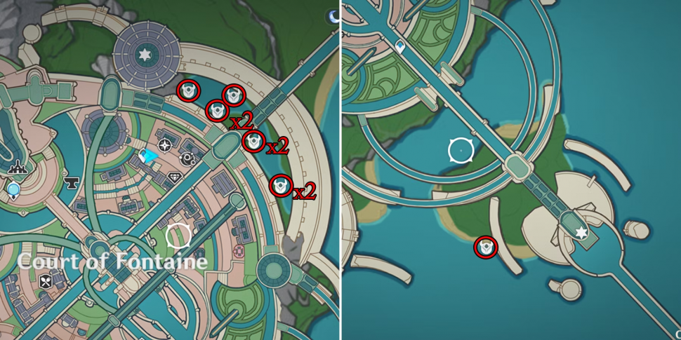 Вокруг двора Фонтейн в Genshin Impact разбросано множество лотосов Pluie Lotus. От статуи Семерых идите на северо-восток к длинному пруду, расположенному на границе города. После этого соберите четыре Pluie Lotus из первой части пруда и еще четыре - из второй.