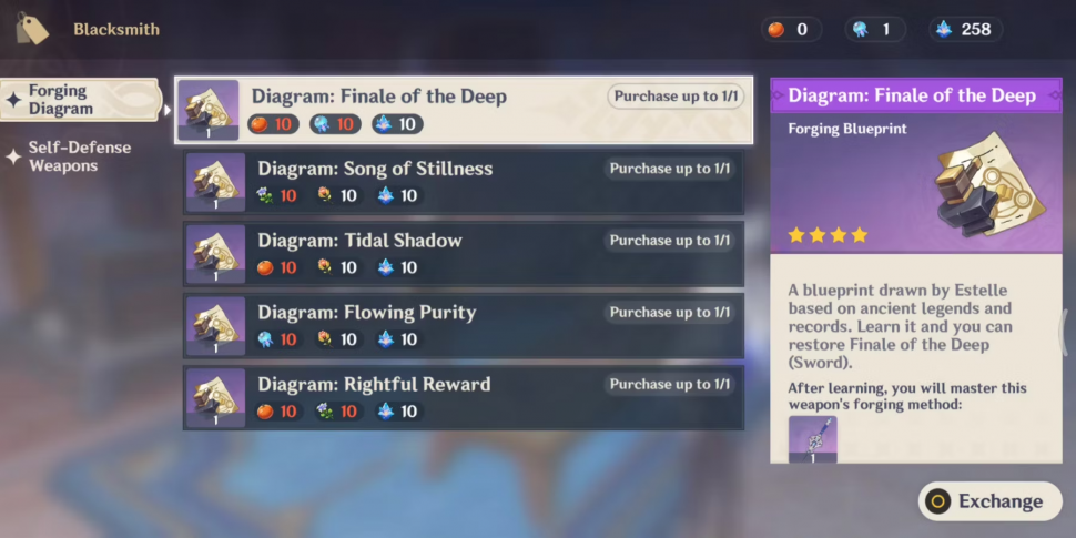 Все упомянутые схемы можно приобрести у Эстель во Дворе Фонтейна. Для получения чертежей не нужно выполнять определенный квест, так как путешественники вольны покупать все, что захотят, с момента открытия статуи Семерых во дворе Фонтейна в Genshin Impact.